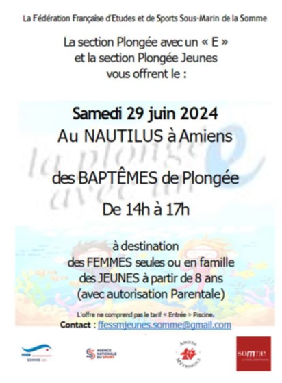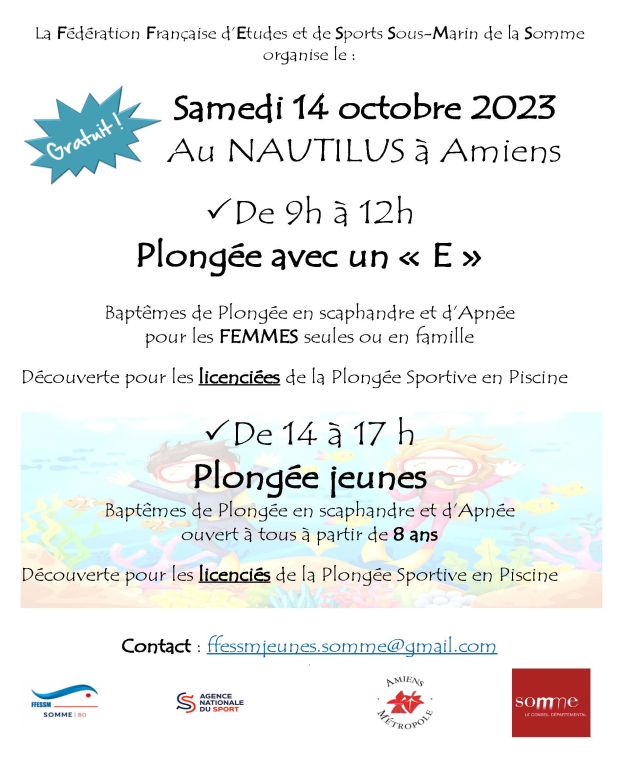 et initiation à l’ apnée et la Plongée Sportive en Piscine pour les licencié(e)s des clubs de la Somme