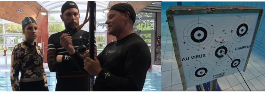 On installera le matériel sous l'eau ( Cible - Maintien pour le tir), une description de la manipulation des arbalètes se fera au sec, puis ce sera à vous de faire des essais sous l'eau en respectant les consignes de sécurité.